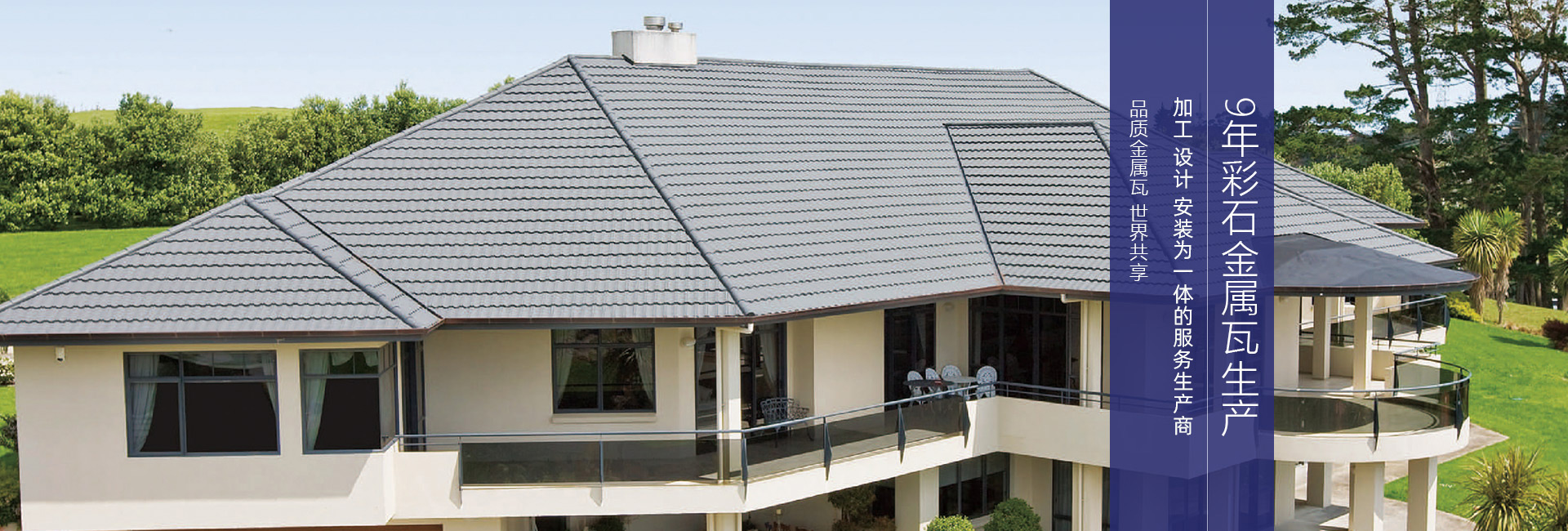 我們是一家彩石金屬瓦、設(shè)計(jì)、制造、銷(xiāo)售、安裝及服務(wù)于一體的公司 以過(guò)硬的產(chǎn)品質(zhì)量,令人滿(mǎn)意的銷(xiāo)售服務(wù),贏(yíng)得您的支持與信賴(lài)。 彩石金屬瓦以防腐性能優(yōu)異的鍍鋁鋅鋼板為基板,以耐候性強(qiáng)的丙烯酸樹(shù)脂為黏合劑,以彩色沙礫為面層的新型屋面材料。